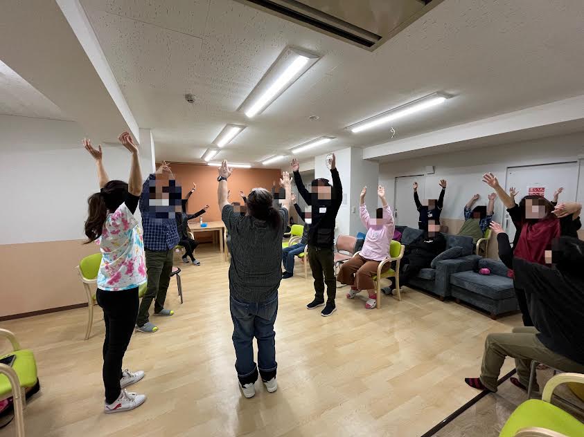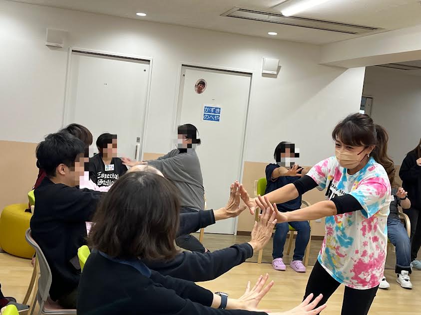 11/15、南愛佳さんによる2回目の「公募ダンサーによるコミュニティダンスを通じた社会的処方の実践事業」のダンス実践が行われました。 今回の実施先は、障がい者グループホームの「ウェルネス美園」。 今回は、13名の方に参加していただきました。実施テーマは「運動する機会をつくる」。